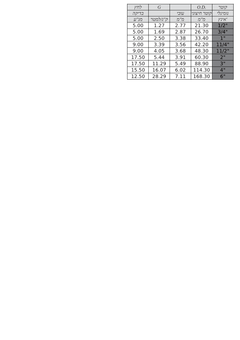 ניתן לספק את הצינורות עם או בלי הברגות לפי ISO 7/1 או NPT לפי דרישת הלקוח.