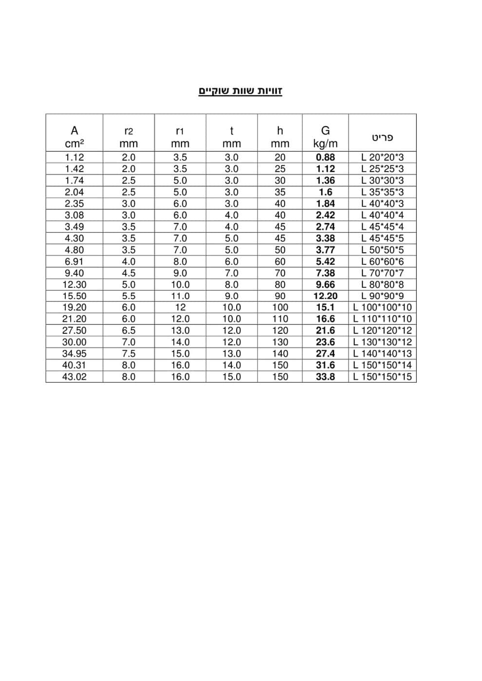 זוויות שוות שוקיים לפי תקן EN10056.